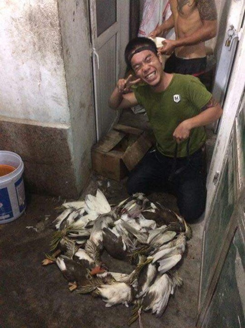 Rời chỗ người đàn ông đang hành hạ con vạc, tôi theo chân anh Nam vào một xóm nhỏ, ở đây cảnh tượng khủng khiếp hơn. Bởi, có đến hàng trăm con chim, cò, vạc… các loại. Chúng bị vặt lông nằm ngổn ngang. Một số đã bị “thiêu sống”, mổ bụng, một số khác mới bị vặt lông, còn đang rên rỉ. Tưởng tôi là khách mua chim về nhậu, một chàng trai 2 tay xách lên 2 chùm chim cò đã làm sạch, cười tươi hỏi: “Chú muốn mua loại nào? Cò 7 chục một cặp, vạc to hơn, thịt ngon hơn nên trăm rưởi cặp 1 cặp. Cháu bỏ mối nên rẻ, chứ nếu ra chợ thì chú phải thêm mỗi cặp 2 chục nữa”.