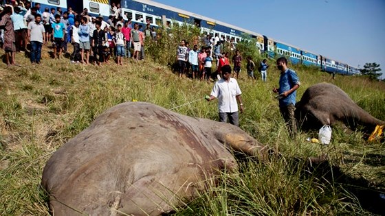 Một đàn voi lớn đang băng qua một đường xe lửa ở bang Assam, bang có rừng dày nổi tiếng với trà và động vật hoang dã, nơi có số lượng voi lớn nhất Ấn Độ đã có 5 con bị đụng chết tại chỗ.