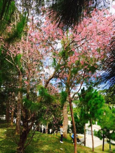Thời điểm này, không phải mất công đến tận đất nước Nhật Bản xa xôi mới được trải nghiệm vẻ đẹp ngất ngây của hàng trăm cội hoa anh đào nở rợp trời xuân, bởi thành phố Đà Lạt của chúng ta cũng đang chìm trong sắc hồng ngọt ngào, lãng mạn của loài hoa này.