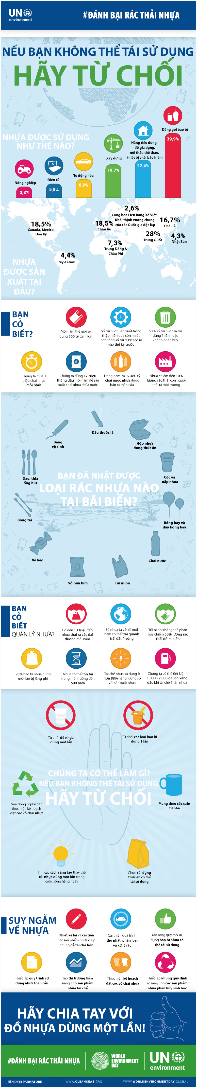 Vì trái đất xanh, đã đến lúc con người phải cân nhắc lại thói quen sử dụng các sản phẩm nhựa. Mời quý vị theo dõi infographic dưới đây để có thêm thông tin và tham khảo cách “đánh bại” rác thải nhựa!