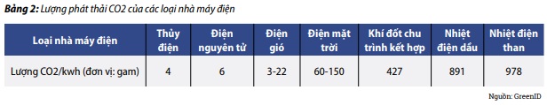 Trước hết, trong ngắn hạn, sản xuất điện bằng các turbin khí là chu trình kết hợp hiện đại có chi phí đầu tư khá thấp. Hơn nữa, các vấn đề về kiểm soát và quản trị công nghệ, thiết bị với điện khí không còn mới mẻ, lạ lẫm ở Việt Nam. Hơn nữa, các vấn đề về kiểm soát và quản trị công nghệ, thiết bị với điện khí không còn là mới mẻ, lạ lẫm ở Việt Nam. Nói cách khác là chúng ta có thể làm chủ được về mặt công nghệ điện khí như đối với điện than. Về phương diện phát thải, điện khí cho phép giảm lượng phát thải khí nhà kính theo kwh một nửa so với lượng phát thải của điện than (khoảng 400 so với 900g C02/kwh của nhiệt điện than (Bảng 2). Như vậy, phương án điều chỉnh với điện khí thay vì tập trung vào điện than là rất đáng nghiên cứu ngay cả trong ngắn hạn.