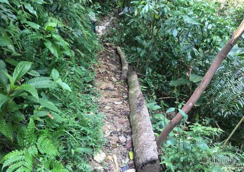 Đỉnh núi Phu Lon, bản Quang Phúc (xã Tam Đình) cao hơn 1.700m so với mặt nước biển, địa hình núi non hiểm trở khó tìm đến. Nhiều người được nhờ vả đều từ chối dẫn theo lối mòn kéo gỗ chằng chịt. Thông qua một vài người quen, chúng tôi nhờ được vài người bản địa đồng ý đưa lên hiện trường khai thác gỗ trái phép.
