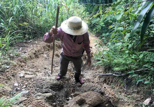 Vượt qua ngọn núi thấp đầu tiên, anh Lô Văn T., một người dân địa phương, chỉ tay về phía đỉnh núi có phủ kín mây trắng kể lại: Thời khoảng 15, 16 tuổi, anh vẫn thường theo người làng đến ngọn núi thấp phía dưới lấy gỗ kéo về nhà. Lúc đó, Nhà nước chưa đóng cửa rừng, gỗ nhiều lắm, hầu như cả bản làng lớn lên ai cũng dựa vào rừng mưu sinh qua ngày.
