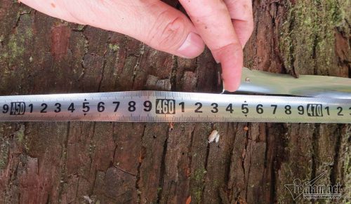 Đường kính của thân cây này đo được tại hiện trường, chỗ rộng nhất là 2,3m (điểm bị chặt).