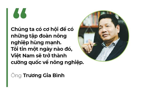 Ông Trương Gia Bình, Trưởng Ban Nghiên cứu phát triển kinh tế tư nhân, từng cho rằng, nếu được xếp hạng tầm quan trọng trong nền kinh tế Việt Nam, ông sẽ xếp nông nghiệp là số 1, sau đó mới tới công nghệ thông tin và du lịch. Ông giải thích, hiện nay, nhiều nước có nông nghiệp phát triển trong khi chỉ có 1% dân số sản xuất nông nghiệp. Trong khi đó, Việt Nam có điều kiện, vị thế rất lớn, sản xuất nông nghiệp không phải tốn điều hòa để làm mát về mùa hè, không phải sưởi ấm vào mùa đông. “Chúng ta có cơ hội để có những tập đoàn nông nghiệp hùng mạnh. Tôi tin một ngày nào đó, Việt Nam sẽ trở thành cường quốc về nông nghiệp”, ông Bình cho biết.