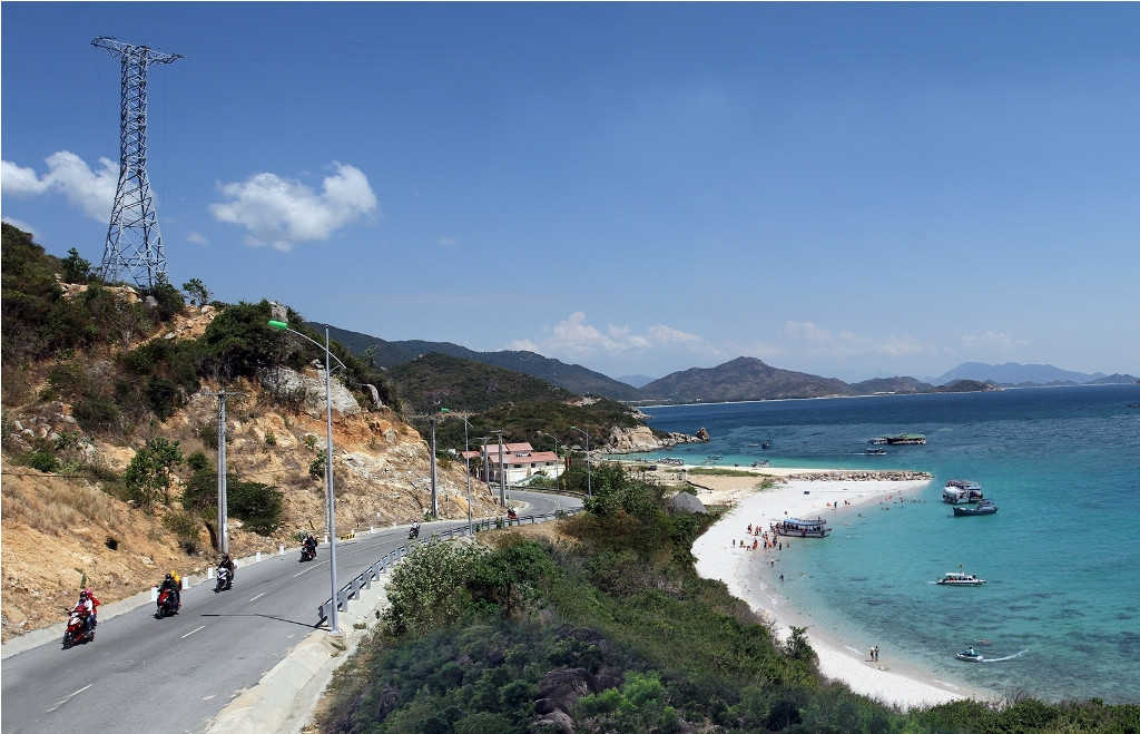Trong khi đó, cung đường đến Vĩnh Hy lại hùng vĩ, uốn lượn như bước ra từ tác phẩm điện ảnh Hollywood, bên này là biển xanh biêng biếc, bên kia là vách núi đá vôi sừng sững giữa trời.