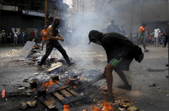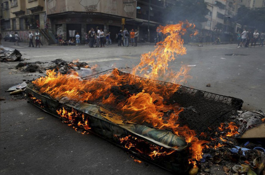 Tức giận vì tình trạng mất điện và thiếu nước liên tục, nhiều người dân Venezuela đã dựng các chướng ngại vật và đốt cháy chúng gần dinh tổng thống ở thủ đô Caracas cùng những khu vực khác trên cả nước hôm 31-3.