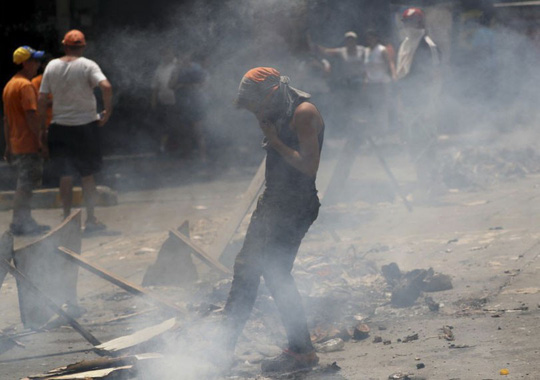 Theo Reuters, những người biểu tình mang cả đá và che kín mặt. Họ đốt lốp xe và thân cây dọc một đoạn đường ở trung tâm TP Caracas trong khi yêu cầu Tổng thống Nicolas Maduro cải thiện tình hình.