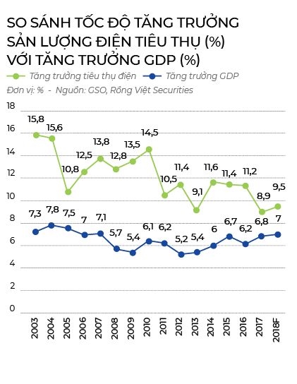 Ngành điện là ngành đầy hấp dẫn. Theo Công ty Chứng khoán FPTS, nằm trong chuỗi giá trị đầu vào của cả nền kinh tế, tăng trưởng GDP của Việt Nam luôn đi kèm với tăng trưởng về nhu cầu tiêu thụ điện. Tiêu thụ điện cả nước trong giai đoạn 2011-2016 luôn tăng nhanh gấp đôi so với tốc độ tăng trưởng GDP. Theo dự báo của World Bank cho giai đoạn 2018-2022, tốc độ tăng trưởng GDP của Việt Nam sẽ rơi vào khoảng 6,5%. Ứng với mức tăng trưởng GDP này, nhu cầu tiêu thụ điện dự kiến trong các năm tới cũng sẽ tăng dần khoảng 11-13% mỗi năm – mức tăng trưởng hàng đầu khu vực và đủ sức hấp dẫn các nhà đầu tư tư nhân.