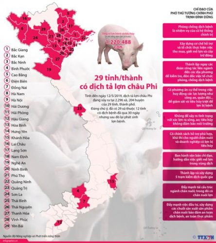 Tính đến ngày 12/5/2019, dịch tả lợn châu Phi đang xảy ra tại 2.296 xã, 204 huyện của 29 tỉnh, thành phố. Đáng chú ý, đã có 29 xã thuộc 12 tỉnh có dịch bệnh đã qua 30 ngày nhưng sau đó lại phát sinh lợn bệnh.