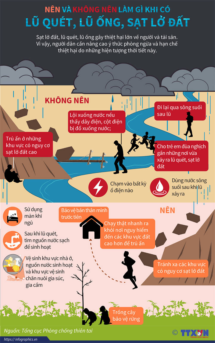 Sạt lở đất, lũ quét, lũ ống gây thiệt hại lớn về người và tài sản. Vì vậy, người dân cần nâng cao ý thức phòng ngừa và hạn chế thiệt hại do những hiện tượng thời tiết này.