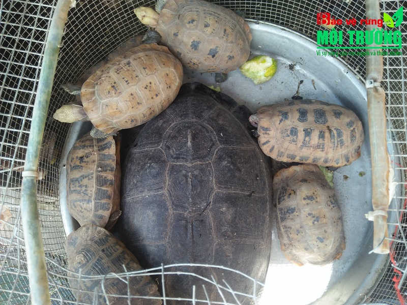 Rắn ở đây cũng nhiều vô kể. Vào mỗi buổi sáng, từng chiếc ô tô tải ùn ùn kéo đến với những thùng xe bịt kín chở đầy rắn, từ những loại rắn thông thường đến rắn hổ mang chúa nặng vài kilôgam. Đặc biệt, nhóm ghi nhận có đến 10 gian hàng bày bán các loại rùa quý hiếm như Rùa ba gờ, Rùa răng, Rùa hộp lưng đen, Rùa núi vàng, Cua đinh với số lượng khoảng 200 cá thể, trong đó có cá thể rùa nặng tới 15 kilôgam, tất cả đều được nhốt chồng lên nhau trong một lồng sắt hoặc đậy kín trong những chiếc lu đựng nước. Đây đều là những loài động vật quý hiếm thuộc nhóm IIB và những cá nhân, tổ chức săn bắn, buôn bán, vận chuyển, tàng trữ trái phép chúng đều có thể bị phạt tù từ 6 tháng đến 12 năm tù, phạt tiền từ 50 triệu đồng đến 1,5 tỷ đồng (đối với cá nhân) và từ 1 tỷ đồng tới 6 tỷ đồng (đối với pháp nhân) theo Điều 234 Bộ Luật Hình sự.