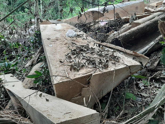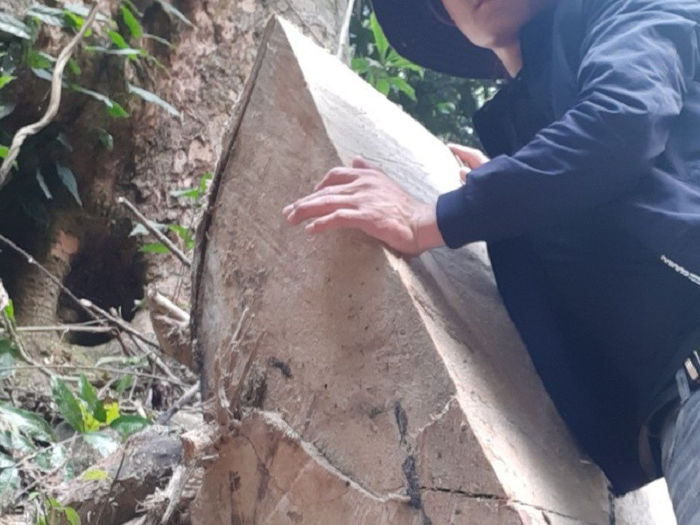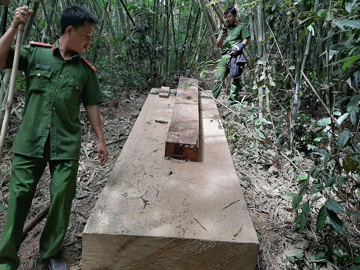 Công an còn phát hiện lâm tặc dùng trâu kéo, máy tời để vận chuyển gỗ ra khỏi bìa rừng và để lại nhiều bìa gỗ, lóng gỗ, cành, ngọn… không còn giá trị khai thác. Thời điểm các đối tượng đưa gỗ ra khỏi hiện trường cách thời điểm phát hiện khoảng 7-10 ngày.