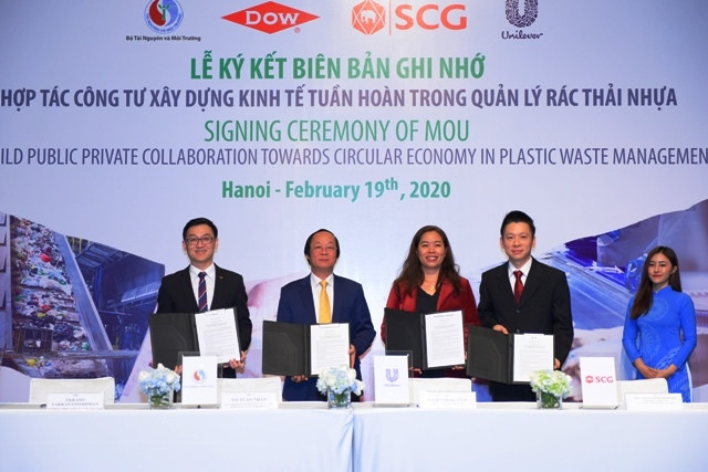 Lần đầu tiên, một thỏa thuận thiết lập Hợp tác công tư (PPC) về xây dựng kinh tế tuần hoàn trong quản lý rác thải nhựa tại Việt Nam đã được ký kết giữa Bộ Tài nguyên và Môi trường và Công ty TNHH Dow Chemical Việt Nam (Dow Việt Nam), Tập đoàn SCG và Công ty TNHH Quốc tế Unilever Việt Nam.