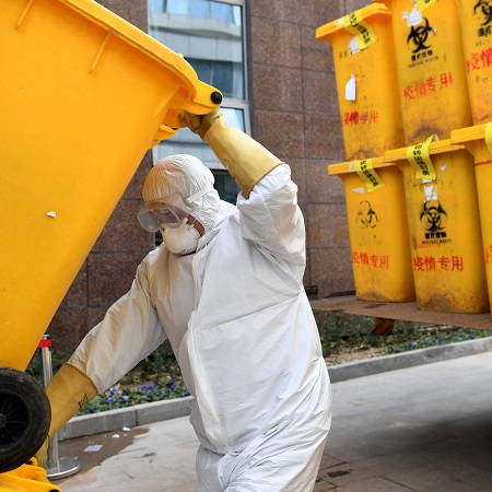 Trong khi nhà chức trách phải chuyển một số rác thải y tế tại Vũ Hán sang các thành phố lân cận để đốt, họ cũng cố gắng tranh thủ sự giúp đỡ từ các công ty xử lý chất thải trên khắp Trung Quốc. Một số lò đốt rác di động được sử dụng trong dịch SARS được đưa tới Vũ Hán để giải quyết núi rác tại đây.