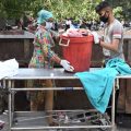 Tại Ấn Độ, các hướng dẫn về việc xử lý rác thải trong quá trình điều trị cách ly những bệnh nhân dương tính và các ca nghi nhiễm virus SARS-CoV-2 cũng được triển khai. Trung tâm kiểm soát và phòng ngừa dịch bệnh cùng chính quyền các tiểu bang Mỹ cũng đưa ra những quy định về tiêu hủy rác thải y tế.
