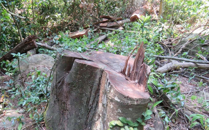 Qua đó, phát hiện vụ phá rừng nghiêm trọng tại tiểu khu 329 có 45 cây gỗ quý (thuộc nhóm 1-3) đã bị cưa hạ. Gốc cây còn lại có đường kính từ 0,4m đến trên 1m. Qua kiểm đếm ban đầu, có 17 cây gỗ gõ (nhóm 1), 26 gốc lim (nhóm 2) và 2 gốc chua (nhóm 3).