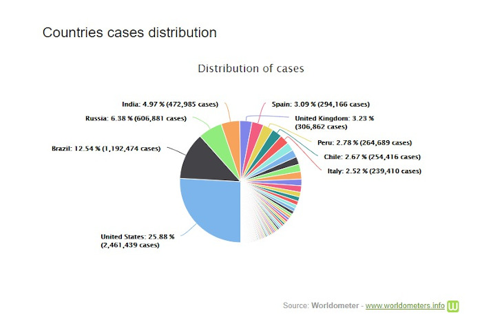 Tính đến nay, Mỹ ghi nhận 2.461.439 người nhiễm Covid-19, tăng 37.271 ca trong 24 giờ qua, mức tăng tương tự với thời kỳ đỉnh dịch ở giai đoạn 1 hồi tháng 4, 5. Số ca tử vong do Covid-19 ở Mỹ hiện là 124.247, tăng 774 trường hợp trong 24 giờ qua.