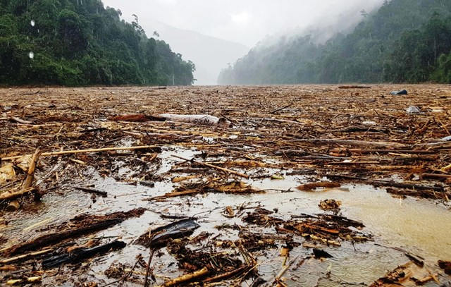 Những năm qua đến mùa mưa lũ là gỗ từ thượng nguồn đổ về các lòng hồ thủy điện, nhưng năm nay bất thường, cả Quảng Nam và Quảng Ngãi ngay sau bão lũ, gỗ tràn về kín chân cầu Nước Bua, ở xã Sơn Bua, huyện Sơn Tây, tỉnh Quảng Ngãi. Còn ở Quảng Nam, hàng nghìn khối gỗ đủ các loại dày đặc trên lòng hồ Thủy điện Sông Tranh 2 và sông Leng…