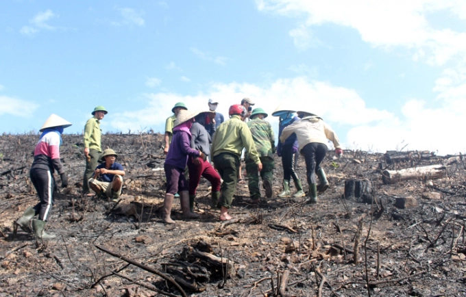 Hàng chục người dân ở xã Liên Trường (huyện Quảng Trạch – Quảng Bình) đã có hành vi lấn chiếm đất rừng để trồng keo…