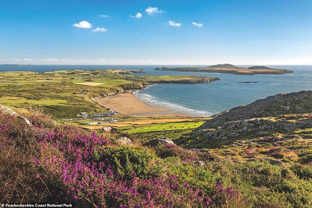“Một thế giới của biển và bầu trời trải dài dọc theo bờ biển phía tây nam xứ Wales” là cách National Geographic mô tả về Công viên Quốc gia Bờ biển Pembrokeshire. Đó là Vịnh Whitesands tuyệt đẹp với cánh đồng hoa dại tím thẫm.