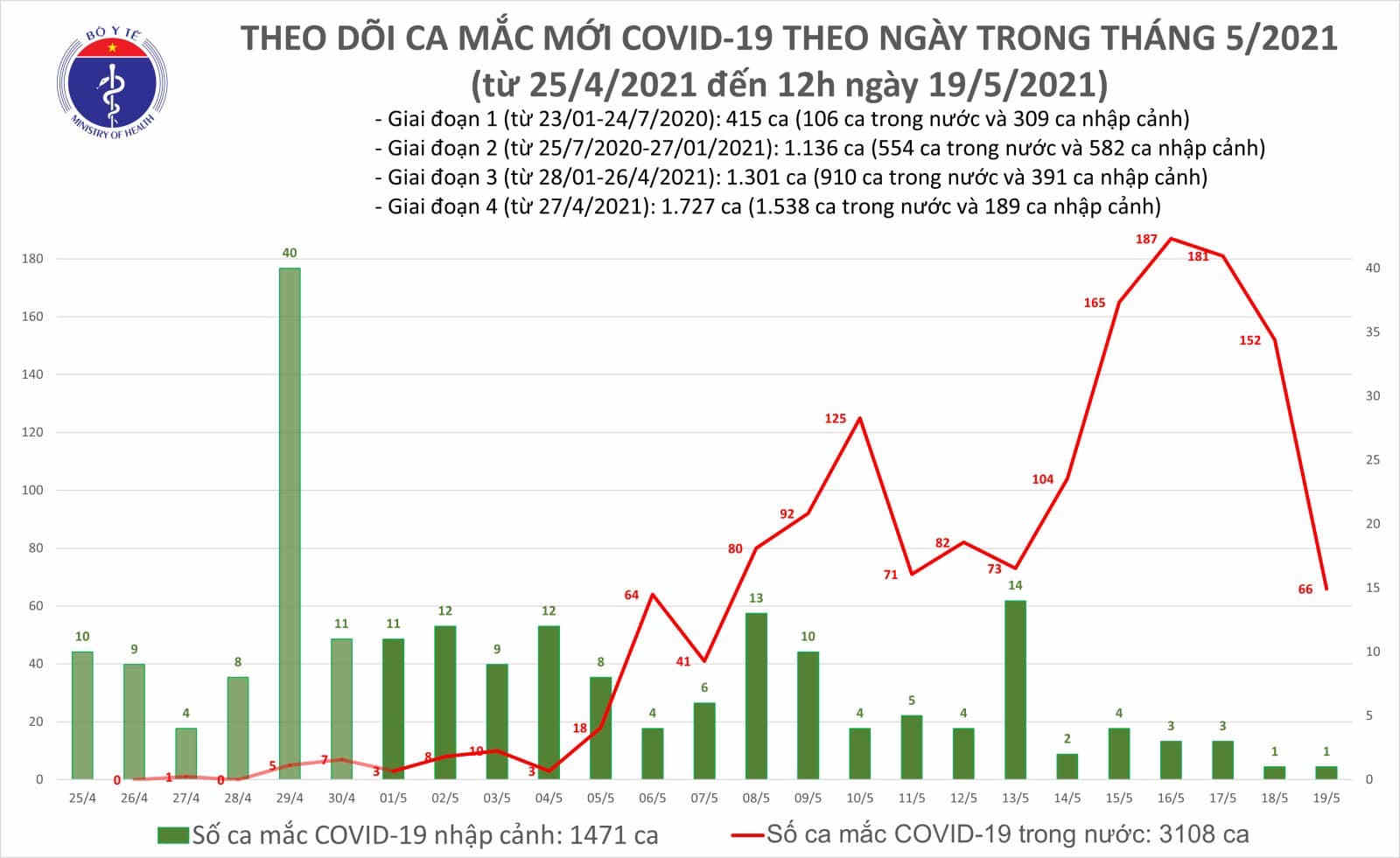 Tính từ 6h đến 12h ngày 19/5 có 36 ca mắc mới (BN4544-4579):