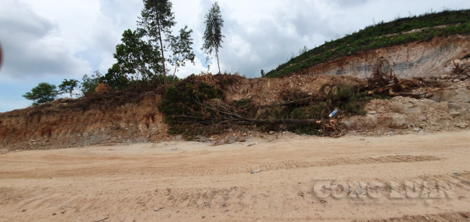 Cùng đó là một phần lớn diện tích đất rừng phòng hộ tại khu vực nói trên đã được san gạt làm đường với chiều rộng lề đường gần 10m, chiều dài dọc tuyến để lên khu vực “khai trường” khai thác đất khoảng chừng 300m chạy dài theo chân đồi.