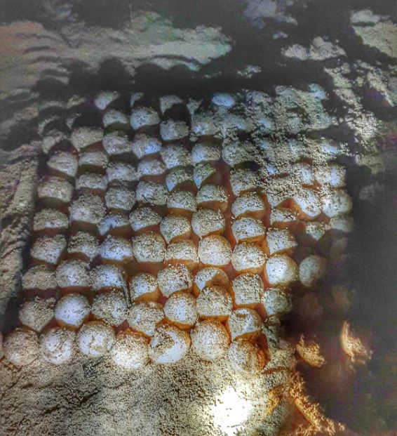 Trong mỗi hố, rùa thường đẻ hơn 100 quả, thậm chí 200 quả. Sau khi đẻ xong, chúng sẽ lấp cát, xóa dấu vết, bảo đảm tổ trứng được an toàn rồi quay về biển.