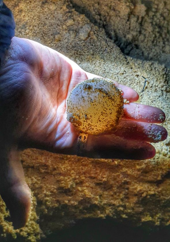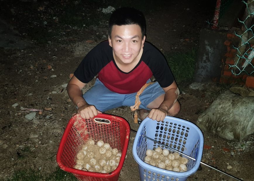“Lần đầu cầm trứng rùa trên tay, tôi vừa thấy lâng lâng hạnh phúc, vừa sợ làm vỡ trứng. Trứng rùa có độ đàn hồi khá tốt nhưng tôi vẫn phải cẩn thận”, Khang chia sẻ.