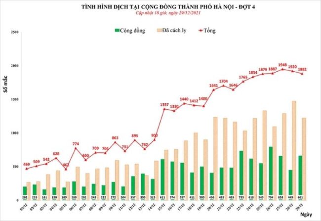 Theo Sở Y tế Hà Nội, ngày 29-12 Hà Nội ghi nhận 1.882 ca Covid-19 mới tại 30/30 quận, huyện, thị xã, trong đó có 661 ca cộng đồng.