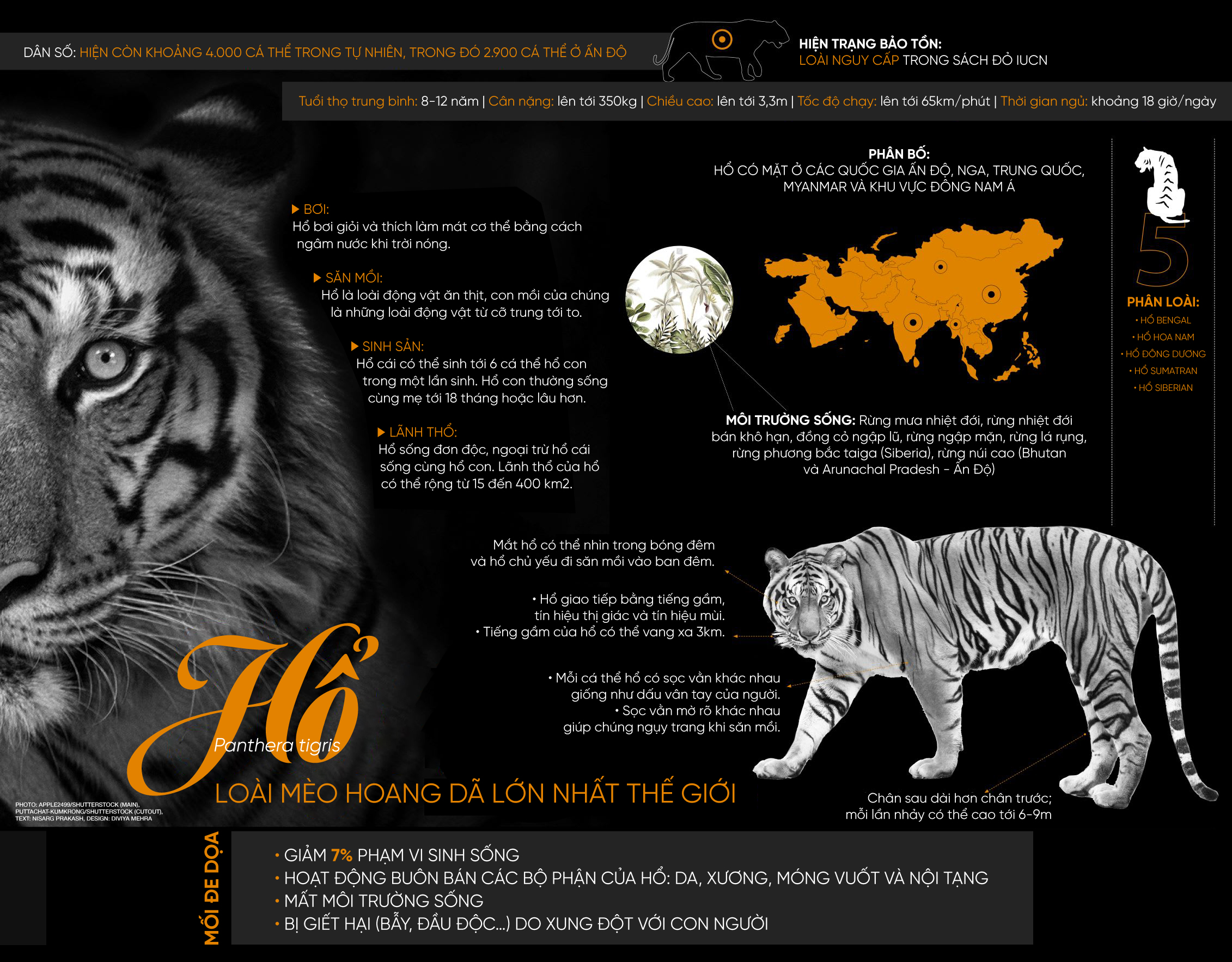 Infographics Hổ – Loài mèo hoang dã lớn nhất thế giới 22/05/2022 FacebookTwitterPinterestWhatsApp Nguồn: PanNature Bài liên quan: Vá rừng trên núi đá Vân Hồ Sản xuất cao su bền vững hướng tới phát thải thấp Rượu ngâm cả con: Hành vi phá hủy thiên nhiên, tiêu diệt loài hoang dã