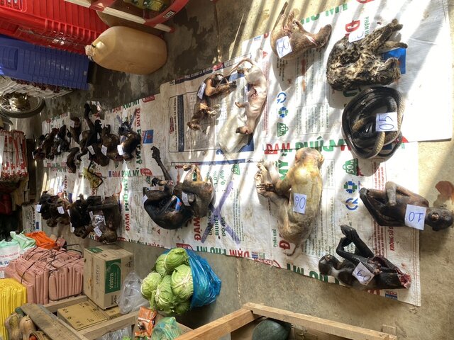 Tại hiện trường, cơ quan chức năng kiểm tra và phát hiện 1 cá thể Mèo rừng (nhóm IIB), 10 cá thể khỉ, 1 cá thể rắn, 1 cá thể Chồn, 1 cá thể Don đá (hay còn gọi là con Hon) và nhiều bộ phận của các cá thể động vật hoang dã khác.