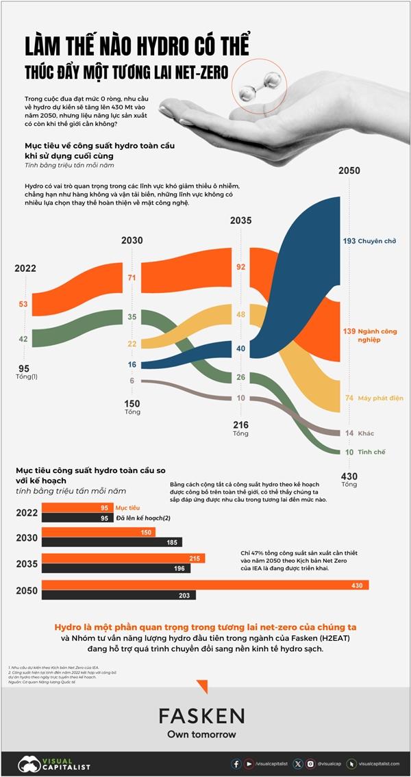 Hydro có hàm lượng năng lượng cao hơn 300% so với xăng, được mặt trời khai thác để tạo ra nhiệt và ánh sáng mang lại sự sống, và khi được sử dụng trong pin nhiên liệu, “chất thải” duy nhất nó tạo ra là nước. Vì vậy, không có gì ngạc nhiên khi các nhà hoạch định chính sách đang xem xét kỹ lưỡng nguồn nhiên liệu trong cuộc đua đạt mức 0 ròng. Nhưng với nhu cầu tăng vọt từ nay đến năm 2050, liệu nguồn cung có sẵn khi cần thiết không?.