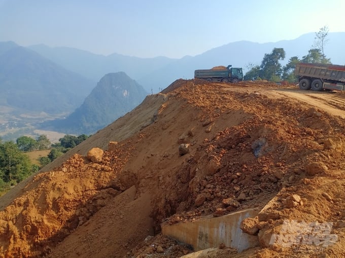 Ghi nhận của phóng viên Báo Nông nghiệp Việt Nam dọc tuyến đường mới mở thuộc địa phận xã Đồng Phúc có 5 vị trí nhà thầu đổ đất đá với khối lượng lớn xuống phía taluy âm.