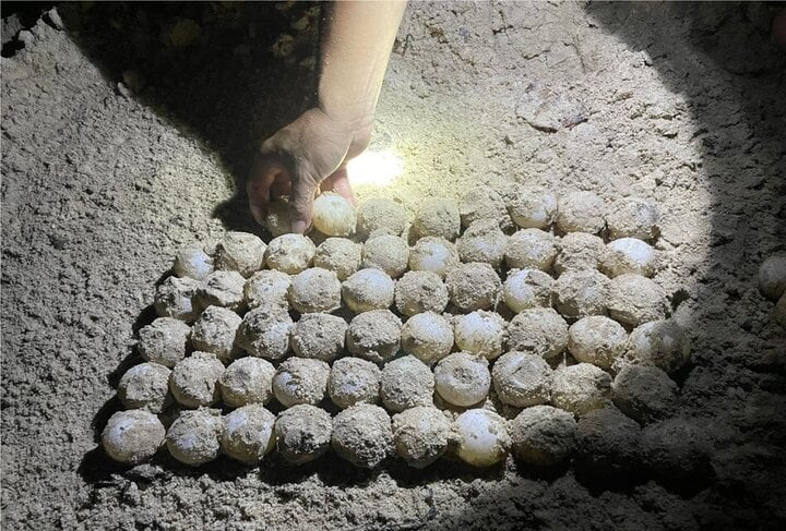 Trung bình mỗi con rùa biển có thể đẻ từ 80-200 quả trứng mỗi lứa. Sau khi rùa mẹ rời tổ, nhân viên sẽ bắt đầu tiến hành thu thập trứng và đem về tổ ấp. Sau khoảng 2 tháng trải qua quá trình ấp nở, rùa con sẽ chui ra khỏi vỏ trứng và tìm đường vươn ra biển khơi.