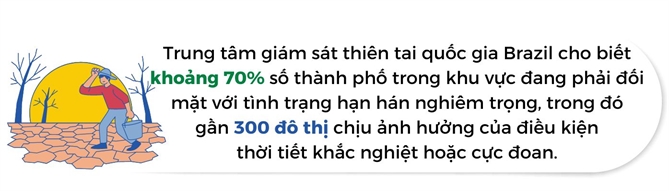 Theo Cemaden, trung tâm giám sát thiên tai của Brazil, đất nước này hiện đang phải chịu đựng đợt hạn hán tồi tệ nhất kể từ khi bắt đầu ghi chép vào năm 1950. Đây là năm thứ hai liên tiếp Brazil phải chịu hạn hán nghiêm trọng. Gần 60% đất nước bị ảnh hưởng, một số thành phố, bao gồm thủ đô Brasília, phải chịu đựng hơn 140 ngày liên tiếp không có mưa.