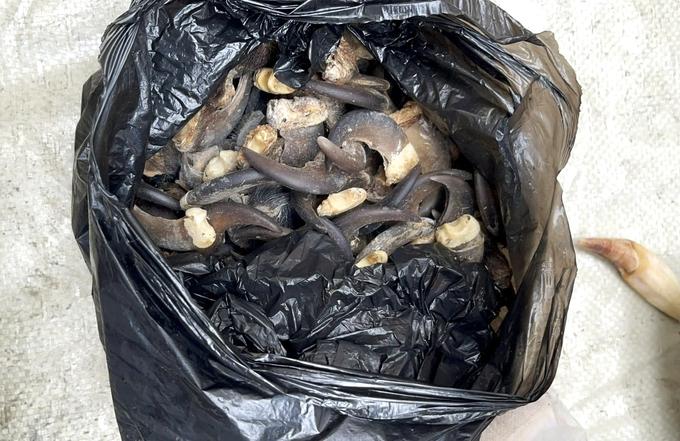Tuy nhiên, qua kiểm tra, các cơ quan chức năng đã phát hiện và thu giữ 56,3kg xương hổ, 9,7kg xương báo gấm, 6,6kg xương báo hoa mai, 17kg xương sư tử, 505kg cá ngựa khô, 0,5kg móng gấu chó và 6,5kg nanh gấu chó cùng một lượng lớn hàng hóa không khai báo khác.